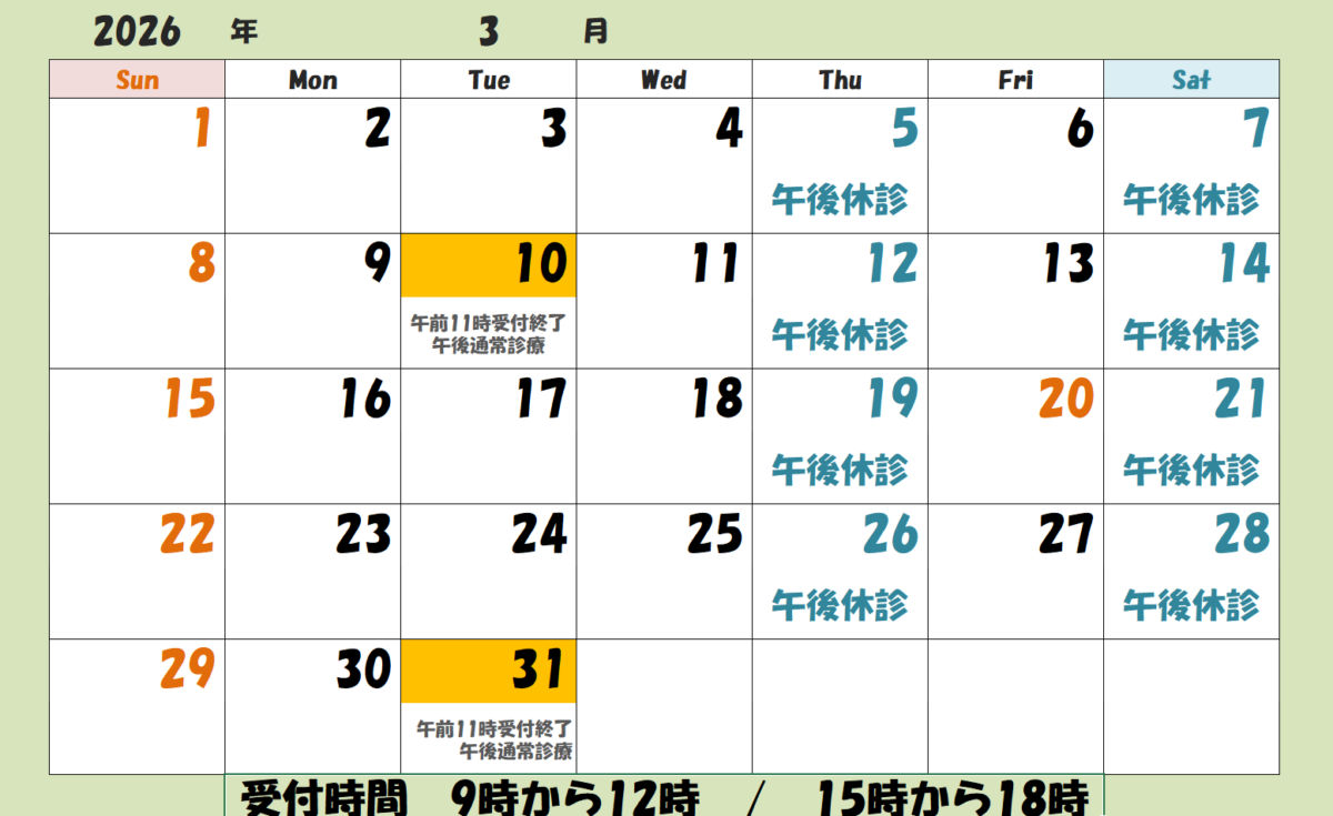 当院では、小児の定期予防接種は予約制で実施しております。一般診療は安全面・診療体制の観点から、中学生以上を診療対象としております。ご理解とご協力のほどお願い申し上げます。